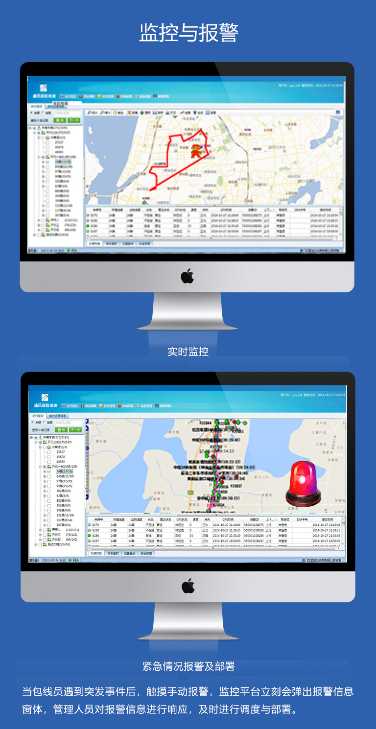 一鍵報警功能和實時監控功能可以對包線員進行位置